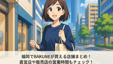 この記事では、BAKUNE(バクネ)を福岡で買いたい人向けに、直営店と取扱店舗の最新情報をまとめています。「BAKUNEって福岡のどこで買えるの?」「試着できる店舗はある?」「営業時間は?」と気になっている方も多いですよね。福岡には、天神・...