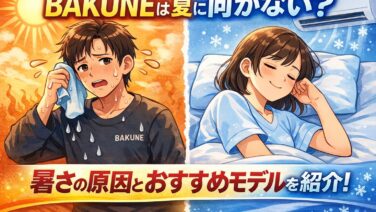 この記事では、夏にBAKUNEが暑いと感じる原因や対策、そして快適に使うためのコツをご紹介します。「買って後悔したくない」「暑がりだけど使ってみたい」そんな方に向けて、夏でも快適に過ごせるBAKUNEのシリーズを紹介します。BAKUNEのシ...
