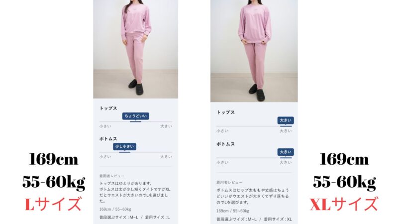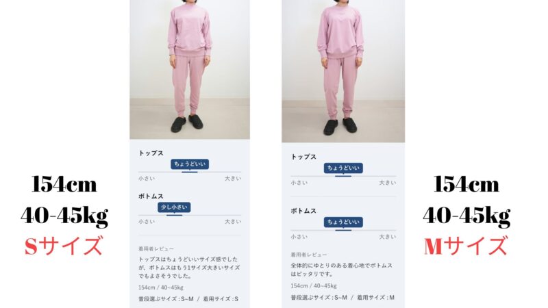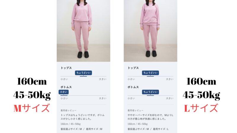 リラックス重視、部屋着や寝間着メインなら大きめサイズを選ぶのが無難です。