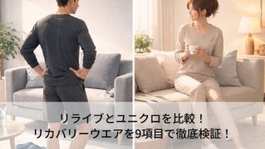 この記事では、リライブとユニクロのリカバリーウエアの違いについて解説しています。リライブとユニクロのどちらが良いかを、9個の項目別に比較しました。結論から言うと、体感や着心地、日常での使いやすさを重視するならリライブ、手頃な価格や手軽に買え...