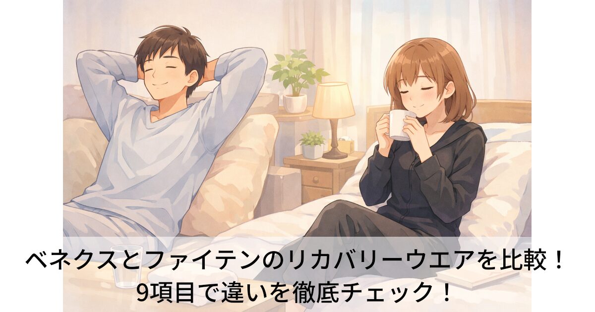 この記事では、ベネクスとファイテンのリカバリーウエアの違いについて解説しています。